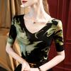 Mid-sleeved T-shirt for Womens Autumn Womens Updated Sexy See Through Bright Silk Mesh Top Temperament One-shoulder Top