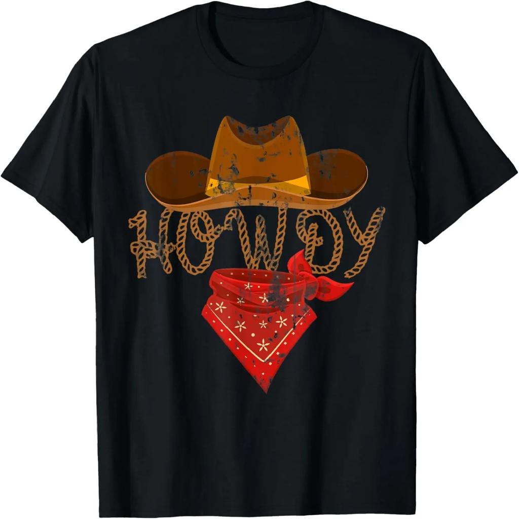 Howdy T-Shirt - Classic Fit, Short Sleeve, Black Polyester & Cotton