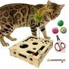 Wooden Interactive Scratch Puzzle Cats Enrichment Toy with 3 Bells Ball for Exploration Scratching Playful Entertainmen