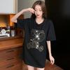 Heavy Industry Diamond Inlay Cartoon T-shirt Womens Short Sleeve Summer Latest Style Stylishable and Versatile Half-sleeved Tie Blouse