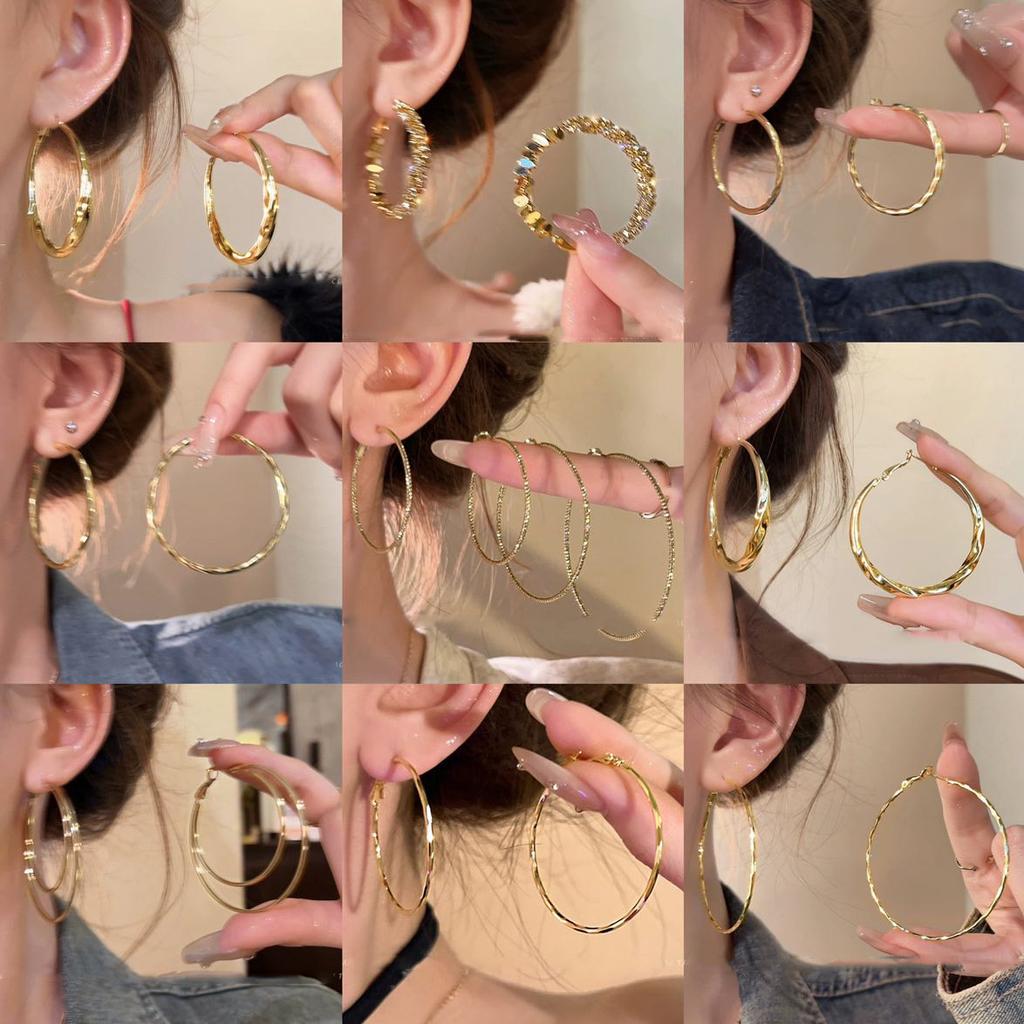 Gold French Simple Round Plain Ring Earrings Light Luxury Earrings Hong Kong Style Earrings