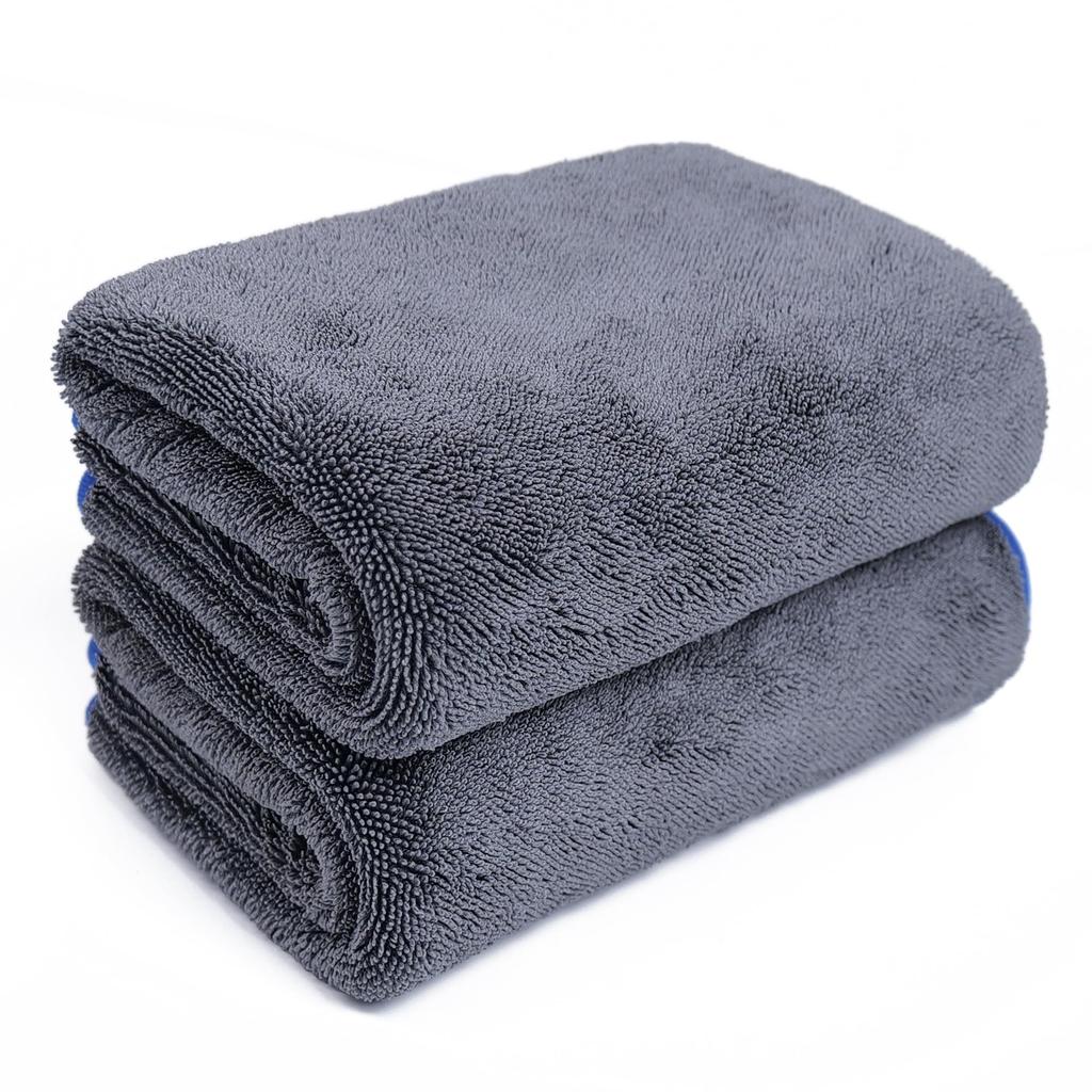 ATOKA Auto-Wasch-Mikrofaser Super 60cm x Dunkles Doppelpack 2 Handtücher, Beidseitige Handtücher, Saugfähig, Kratzfest, 90cm, Grau,