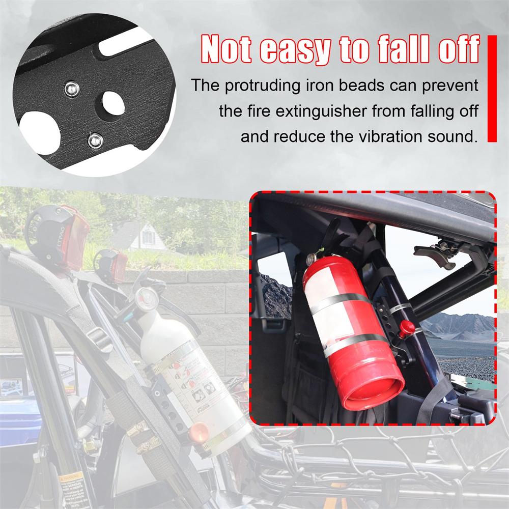 - Die Halterung für den Feuerlöscher ist aus hochwertigem und robustem 6061-T6-Billet-Aluminium gefertigt, vollständig eloxiertes Aluminium, anstelle von leicht reißendem Stoff.. Haltbarer, kein Rost, kein Ausbleichen.