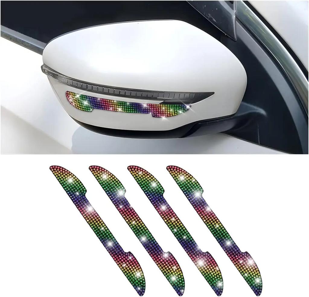 4PCS Bling Car Rear View Mirror Anti-Scratch Stickers Protector Rhinestone Auto Door Handle Edge Guards Crystal Accessories