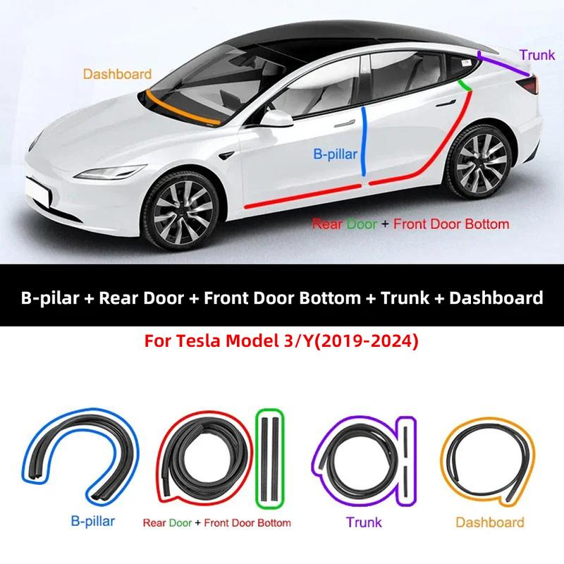 Door Seal Soundproof Kit For Tesla Model Y -2024 Model 3 - Wind Noise Kit Front Trunk Strip Sealing Set