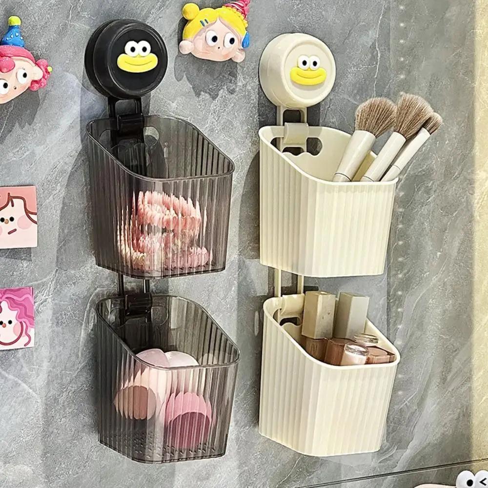 Niedliche Wandmontierte Küchenaufbewahrungsbox Abflussbar Große Kapazität Aufbewahrungskorb Ohne Bohren Regal Organizer Behälter Badezimmer