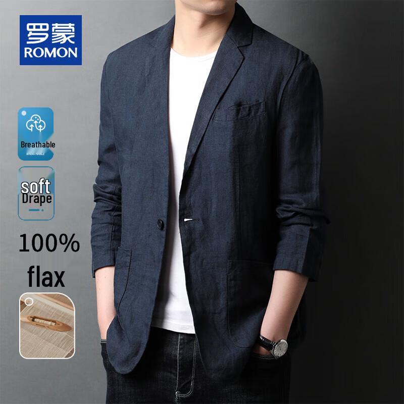 ROMON Men's 100% Linen Slim Fit Casual Blazer