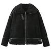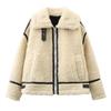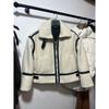 Europäisch-Amerikanischer Damen-Motorradmantel aus Lammwolle & Leder - Herbst/Winter 2023 Edition