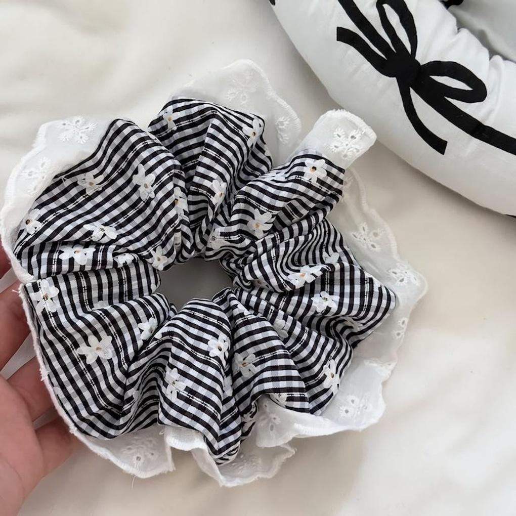Women's Check Floral Embroidery Lace Crochet Scrunchie
