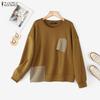 ZANZEA Women Round Neck Long Sleeve Lace Patchwork Floral Print Tee Tops