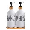 500ml Hand Spülmittelspender Set mit Bambusablage Nachfüllbare Plastikflasche Shampoo Duschgel Lotion Flüssigkeit Leerer Behälter