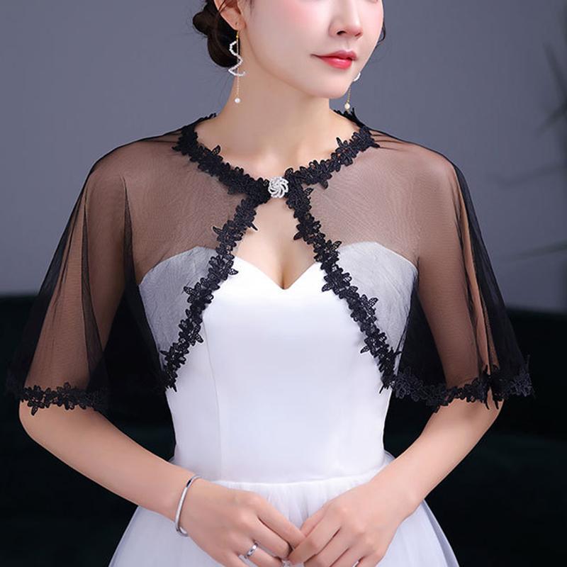 Korean Solid Color Thin Chiffon Women'S Sunscreen Shawl Summer Collocation Suspender Skirt With Diamond Buckle Lace Cloak V25