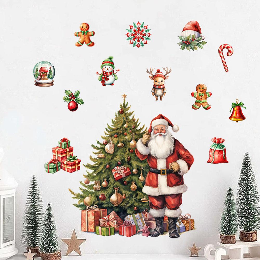 Santa Claus Snowman Christmas Wall Stickers Removable PVC Decals for Festive Holiday Decoration on Smooth Walls