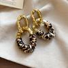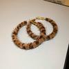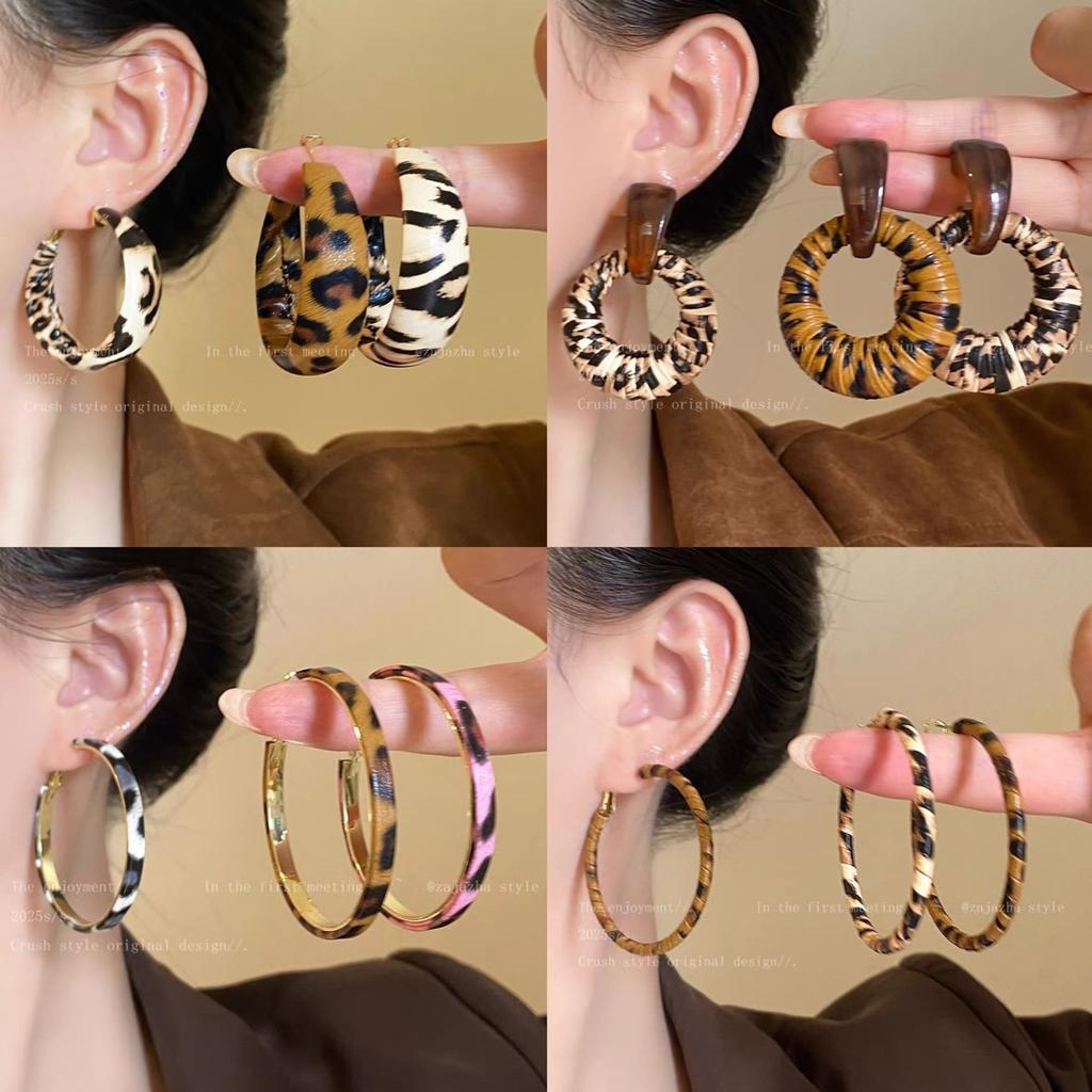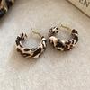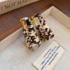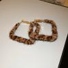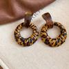 European and American retro autumn and winter geometric leather leopard print earrings light luxury stud earrings personality temperament earrings