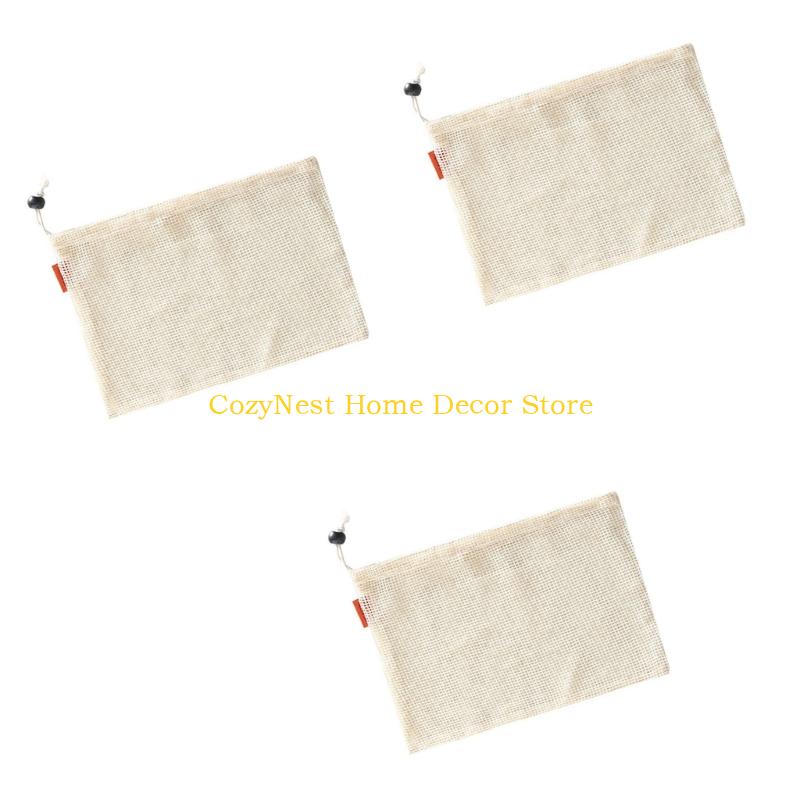 92MF Reusable Cotton Meshes Produce Bags Drawstring Closure Multiple Sizes For Fruits Vegetables Storage Organizers
