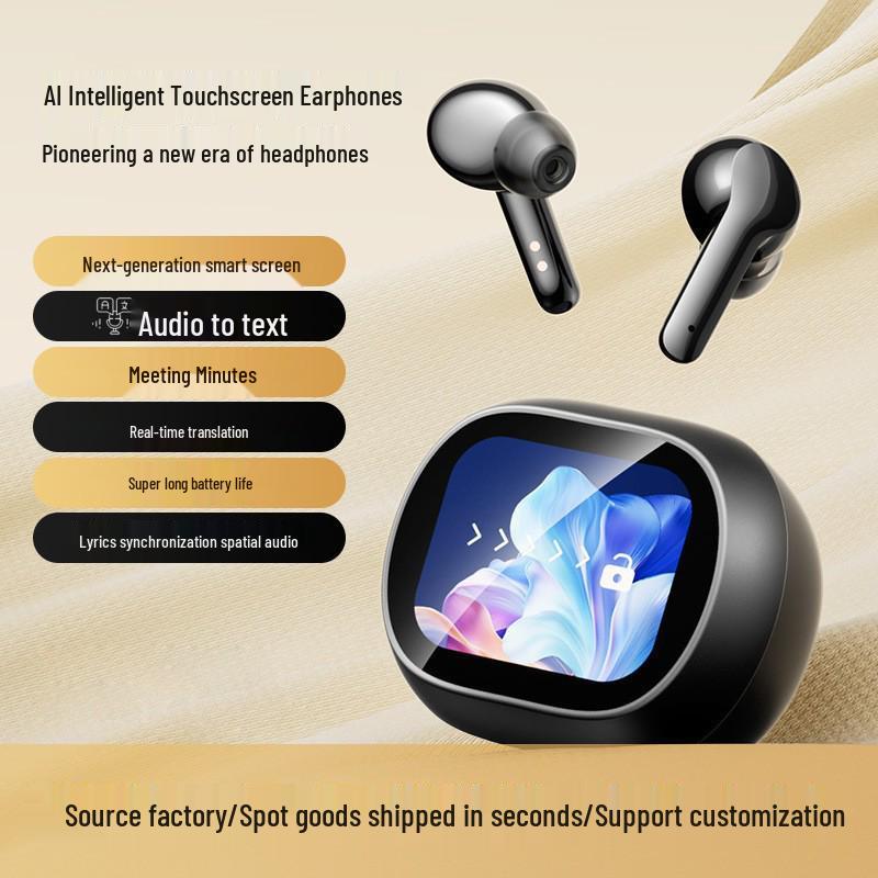 2025 AI Translation Bluetooth Earphones with Color Screen, Built-in App, Long Battery Life, Type-C In-Ear Wireless.