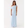 Damen Sommerkleid 2025 Neu Einfarbig Asymmetrisch Schulterfrei Rüschen Lang