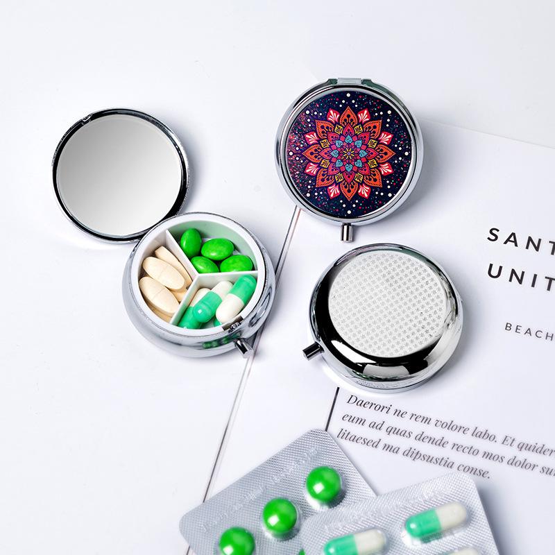 Runder Speicher mit 3 Fächern Einzelnes Fach Metall Kleine Medikamentenbox Schmuckschatulle Faltbar Tragbar Mini-Medikamentenbox