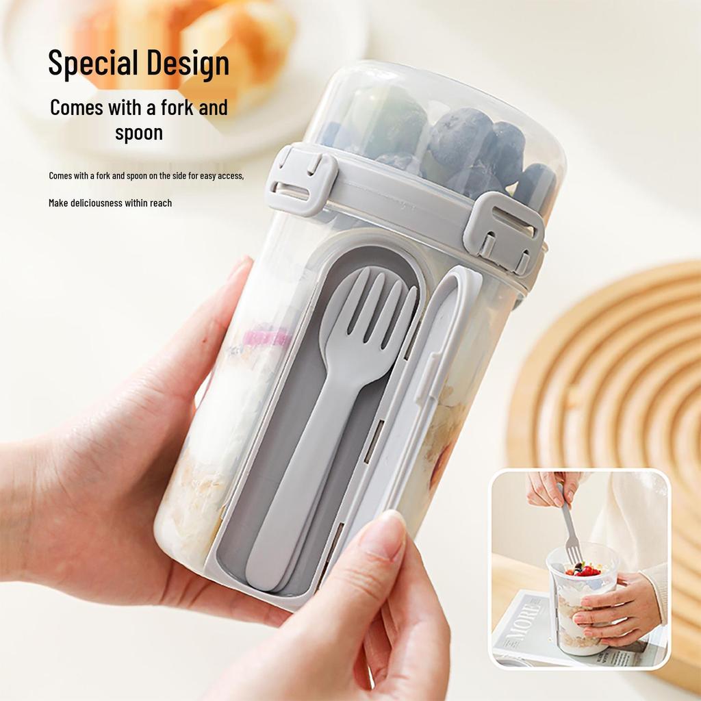 Doppellagiger tragbarer Becher für Salat & Joghurt zur Frischhaltung mit Löffel & Saucenbehälter