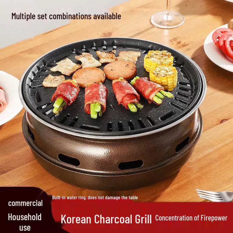 Koreanischer BBQ Runder Gusseisen Rauchloser Holzkohlegrill für Außen- und Innenbereich