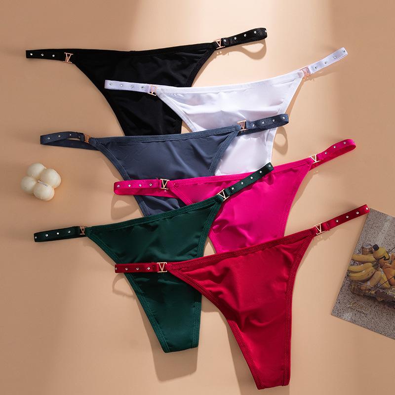 Damen Frühling und Sommer Sexy Metall Schnalle Baumwoll Schritt Nicht Abzeichnend Niedrige Taille Tanga Unterwäsche