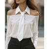 HNXC U Damenmode Lässig Unifarben Druck Langarm Blusen & Hemden