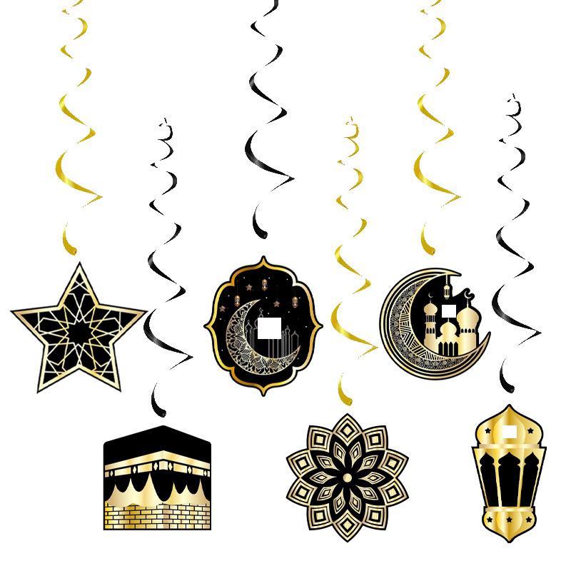 6pcs/set Ramadan Festival Wall Ceiling Decoration Ramadan Spiral Tag Hanging Ornament Decor Eid Mubarak Party Decor