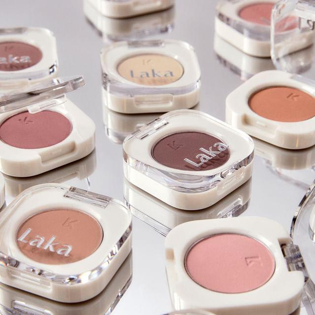 Create your perfect eyeshadow look with Laka’s Mono Eyeshadow collection. The finely-milled powder adheres and blends effortlessly without clumping. Available in 26 shades in a variety of matte and glitter finishes. Mix and match to create cohesive eye makeup looks!