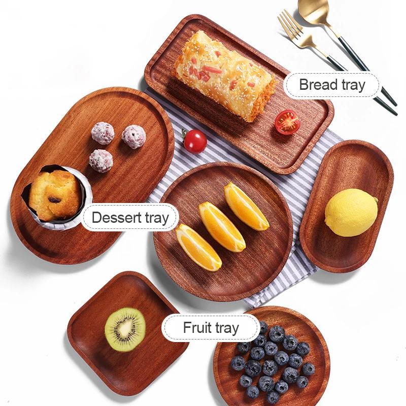 Holzplatte Massivholz Essteller Unzerbrechliches Geschirr für Küche Geschirr Snacks Obstschale Dessert Servieren