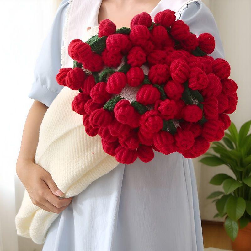 Handgestricktes Rosenstrauß-Kuscheldecke für Mädchen, Freunde, frisch Verheiratete - Perfektes praktisches Weihnachtsgeschenk