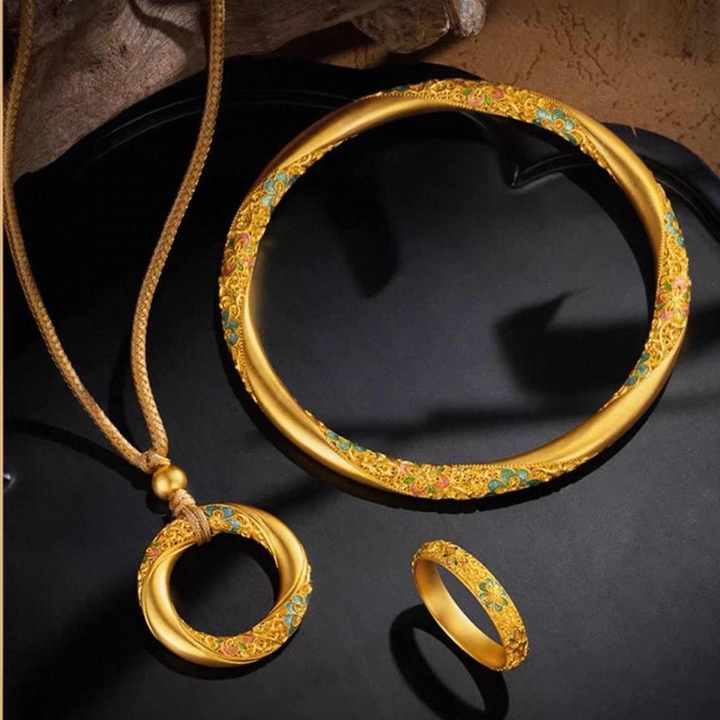 Üppiges Brokat-Vergoldungs-Set: Damen Armreif, Ring und Anhänger Schmuck im chinesischen Stil
