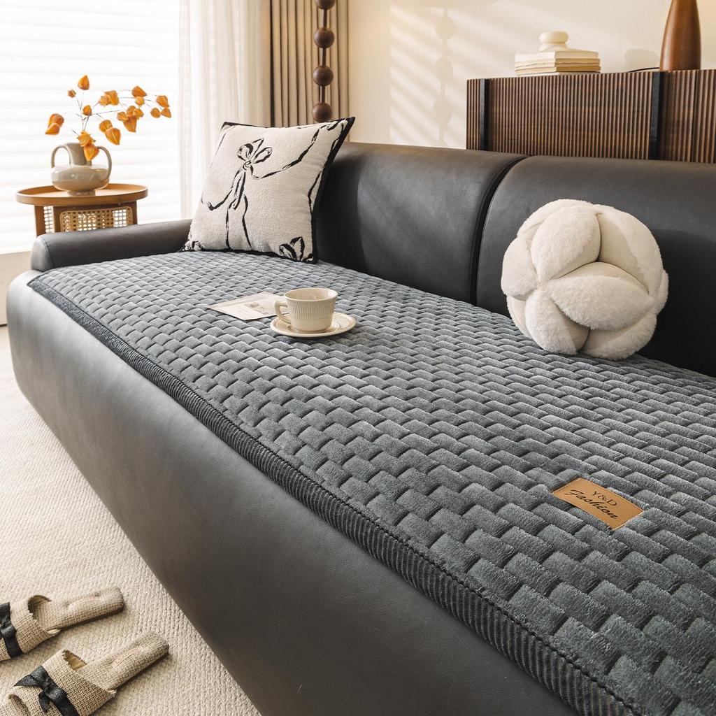 Creme-farbene kurzflorige rutschfeste Sofakissenhülle - Verdickte einteilige für Herbst/Winter 2026