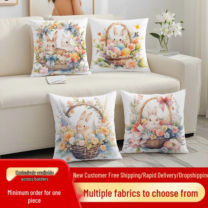 Kaninchen Floraler Cartoon-Druck Kissenbezug für Zuhause und Büro Sofakissen