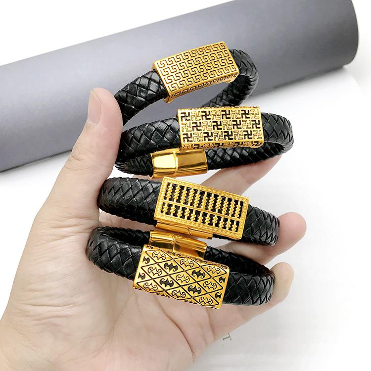 Vietnam Sandgold Persönlichkeit Ruyi Abakus Lederarmband für Männer - Dominanter Ethnischer Stil, Vergoldet.