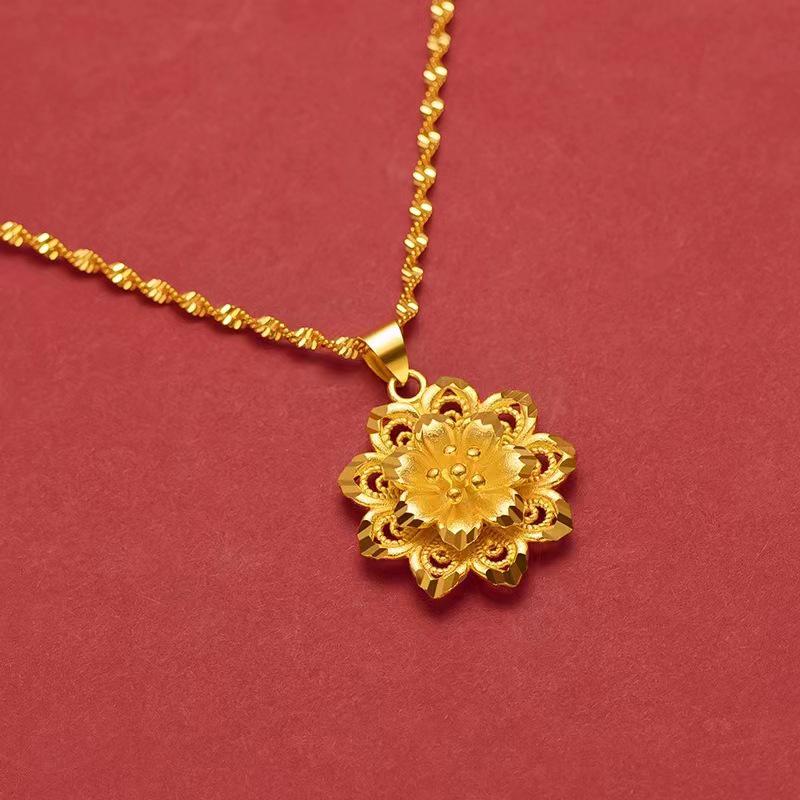 Gold Plated Brocade Flower Pendant Necklace - Double Ripple Clavicle Chain, Perfect Mother's Day Gift.