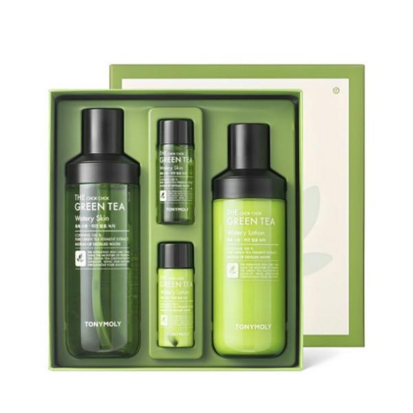 TONYMOLY The Chok Chok Green Tea Watery Skincare Set is a refreshing Korean skincare duo designed to deliver deep hydration and soothing care. Formulated with fermented green tea extract, this set helps replenish moisture, calm the skin, and maintain a fresh, balanced complexion. Ideal for daily use, it provides lightweight yet long-lasting hydration without heaviness.