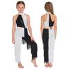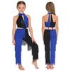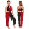Lateinischer Tanz Wettbewerbskostüm für Mädchen: Colorblock Pailletten Quasten Jumpsuit, Neckholder Ärmellos mit Cut-out Rücken für Bühnenauftritt