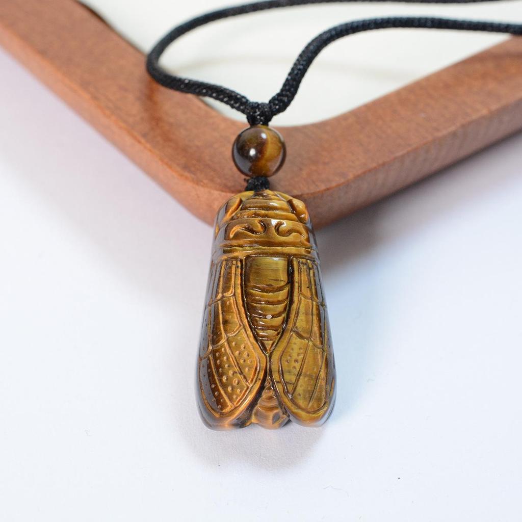 Natürlicher Tigerauge Stein Gold Jade Zikade Anhänger Halskette