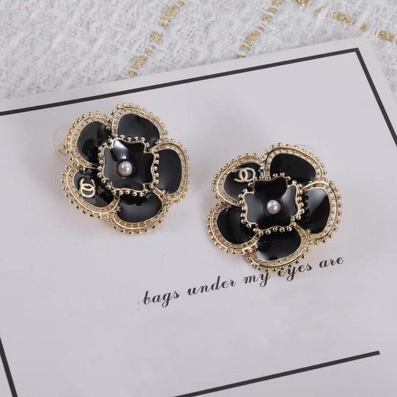2025 Blumige Emaille Perlen Doppel C Steckerohrringe im Europäischen & Amerikanischen Stil