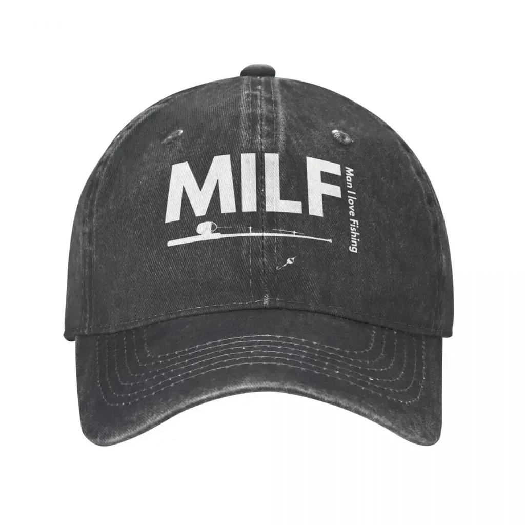 Mann Ich Liebe Angeln MILF Baseballkappen Klassische Abgenutzte Baumwolle Sonnenschirmkappe Unisex Outdoor Alle Jahreszeiten Reisekappen Hut