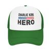 Helden-Charlie-Kirk-Flagge Benutzerdefinierte Netz-Baseballkappen für Herren Camping Damen Strand Papa-Hut Schirmmütze