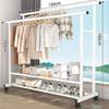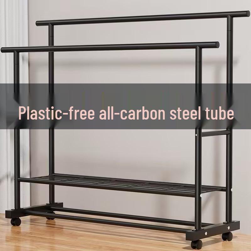 Sturdy Double Bar Wardrobe Rack for Dorms: Floor-Standing, Dual-Layer Clothes & Hat Hanger for Bedrooms and Balconies.