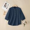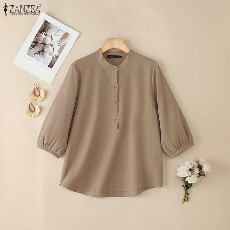 ZANZEA Women Casual Round Neck Solid Color 3/4 Sleeve Cotton Blouse