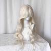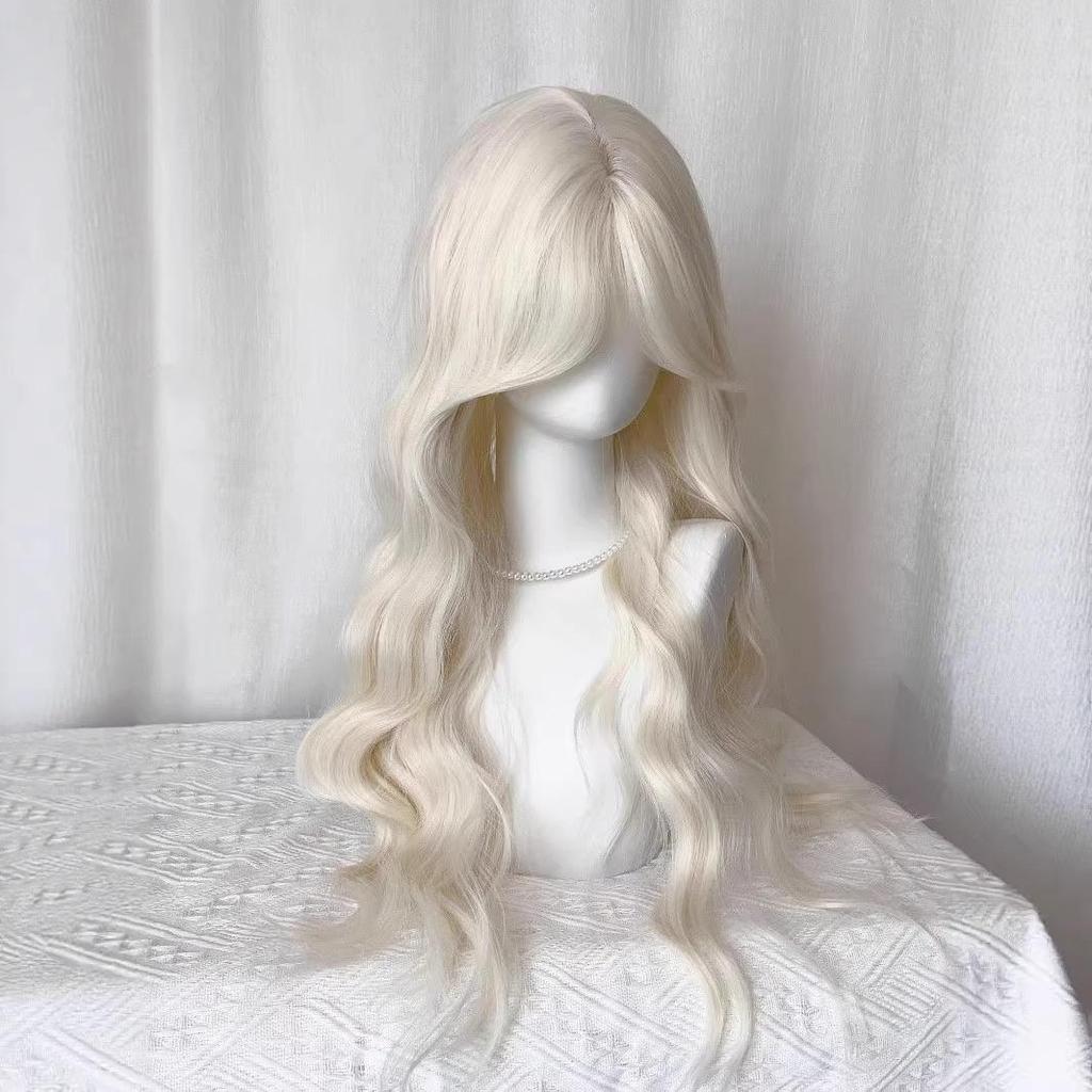 Milchweißes Goldfarbenes Langes Lockiges Haarteil mit Wasserwellen, Mittelscheitel und Acht-Zeichen-Pony - Natürlicher Lolita-Stil Vollhaarteil
