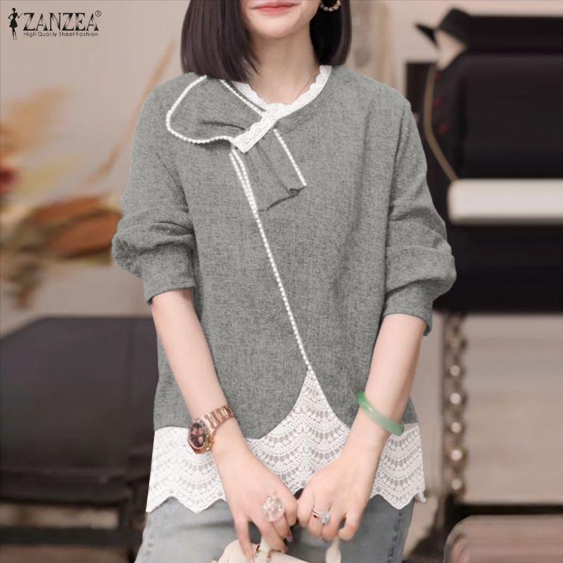 ZANZEA Women Casual V Neck Long Sleeve Lace Splice Blouse