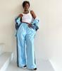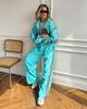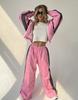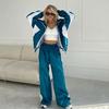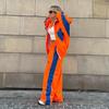 FLARORA Mode Color-Blocking 2-teilige Sets Damen Langarm Reißverschluss Lockere Jacken und Gerade Bein Hosen Outfits Street Trainingsanzüge