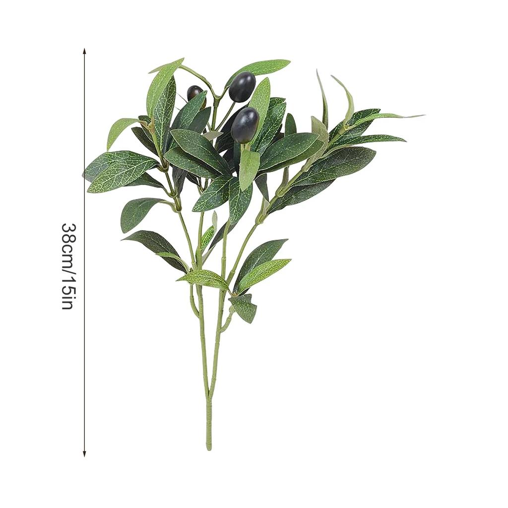 38cm Künstlicher Olivenzweig Seidenpflanzen Blume Heimdeko Fotografie Requisiten Schaumstoff Früchte Plastikstiele Unechte Olivenbaumzweige