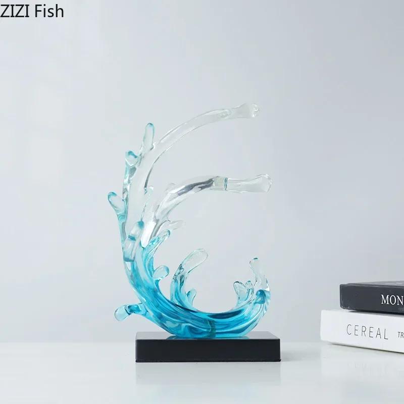 Blaue Meereswellen Statue Schreibtischdekoration Ornamente Kreative Transparente Meereswelle Skulptur Harzhandwerk Raumästhetik Dekor