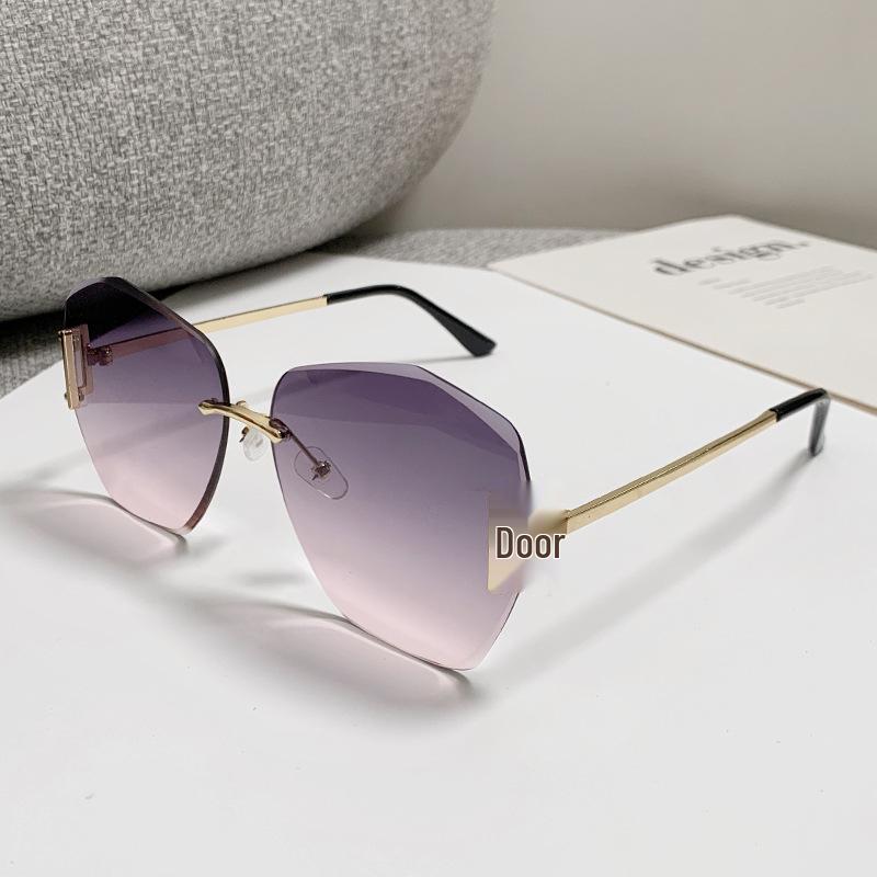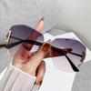 Rahmenlose Große Metall-Sonnenbrille für Damen: Europäischer & Amerikanischer Stil, Farbverlauf UV-Schutz, High-End, Schlankmachender Look
