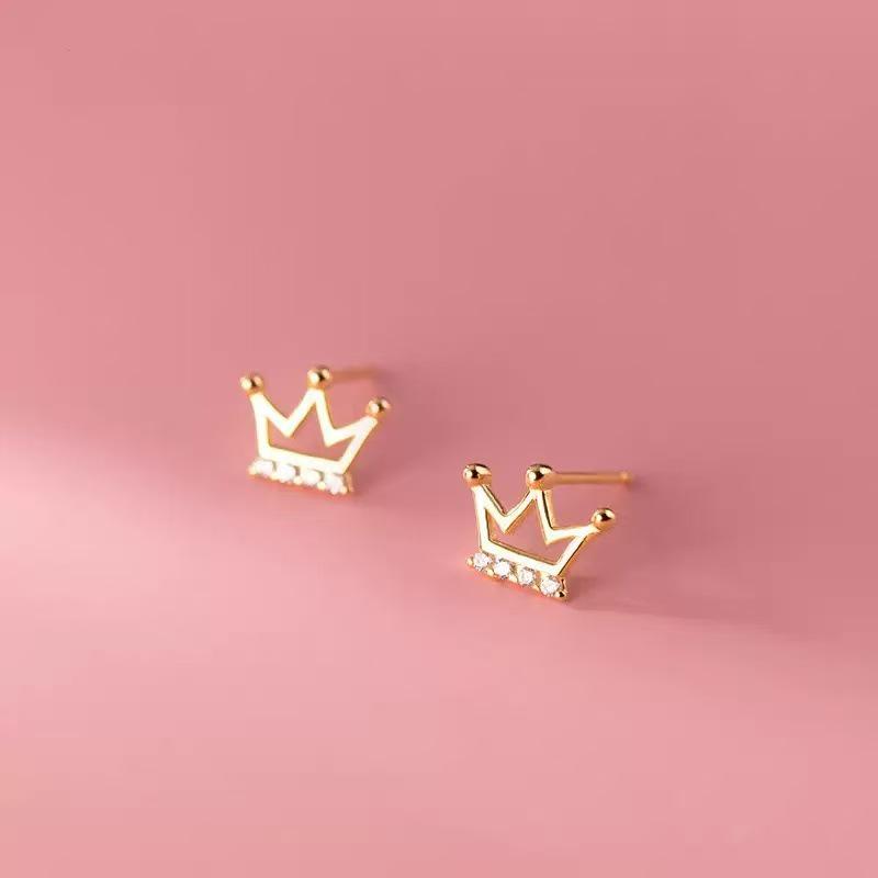 S925 Sterling Silver Korean-Style Diamond-Inlaid Cute Crown Stud Earrings for Women